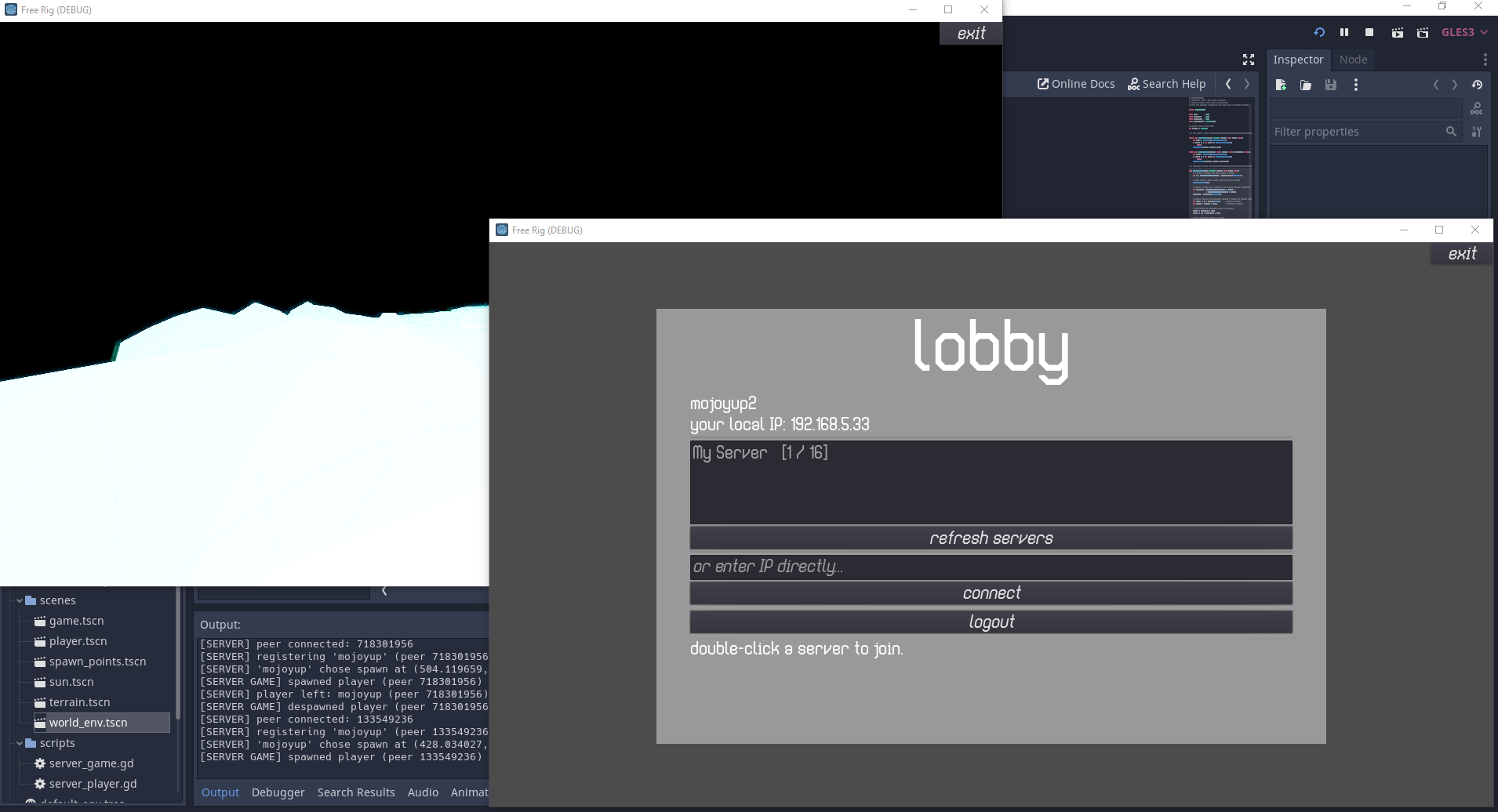Working on a multiplayer game in Godot 3.6.2 with dedicated server architecture. Looking for a few people to help test basic connectivity and player sync.
